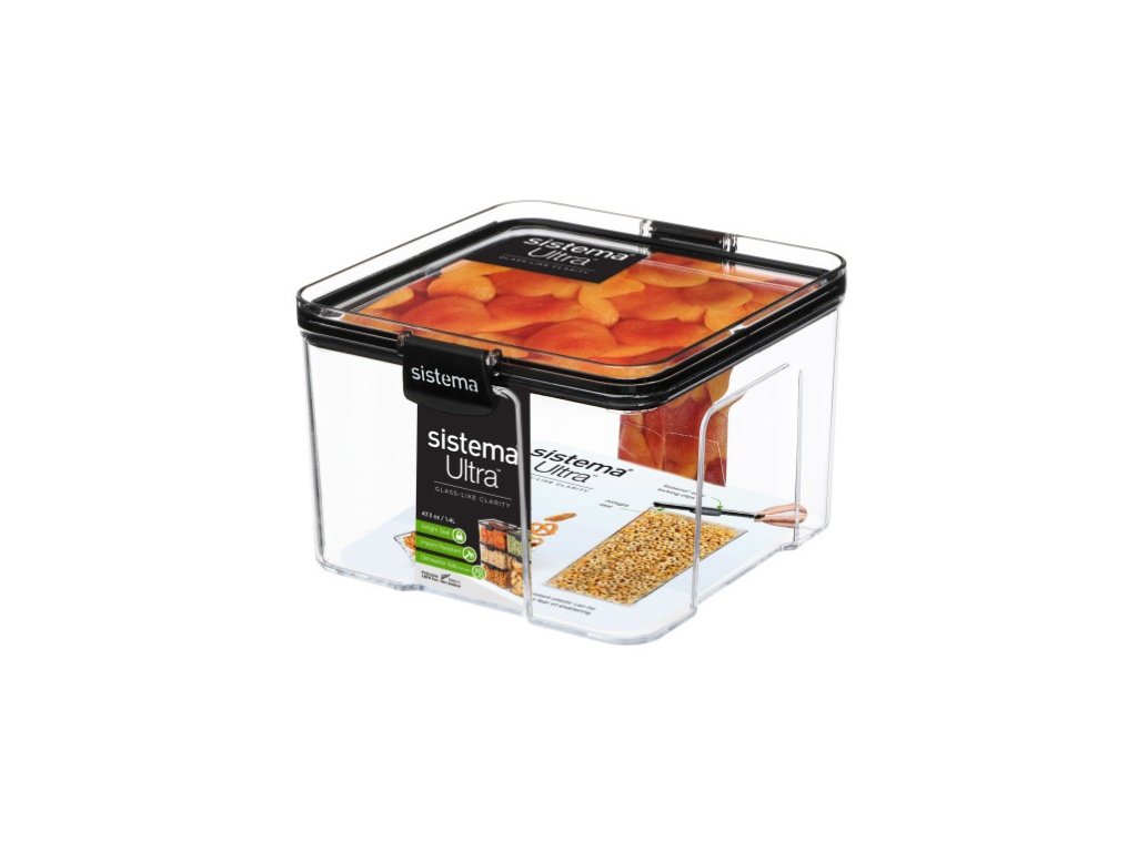Das hochtransparente Plastik mit glasähnlicher Transparenz ermöglicht eine optimale Sicht auf den Inhalt. Robust und bruchfest. Platzsparend stapelbar für eine effiziente Küchenorganisation. Die einfach zu bedienenden Sistema-Clips und der luftdichte Verschluss halten den Inhalt frisch. Teil der quadratischen Serie (154 x 142 mm).Zusätzliche Parameter