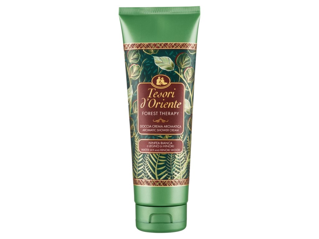 Das Duschgel Tesori d'Oriente Forest Ritual ist von der japanischen Kunst des Shinrin-Yoku inspiriert und zelebriert die wohltuende Kraft frischer Waldluft, die die Sinne regeneriert und innere Balance schafft. Mit frischen Noten von weißer Seerose und zitrusholzigen Hinoki-Noten reinigt es sanft die Haut und sorgt für ein angenehmes Gefühl der Entspannung und des Wohlbefindens. Gleichzeitig hat es eine cremige Konsistenz, die einen reichhaltigen Schaum erzeugt. Genießen Sie die unwiderstehlichen Düfte des Orients der Marke Tesori.