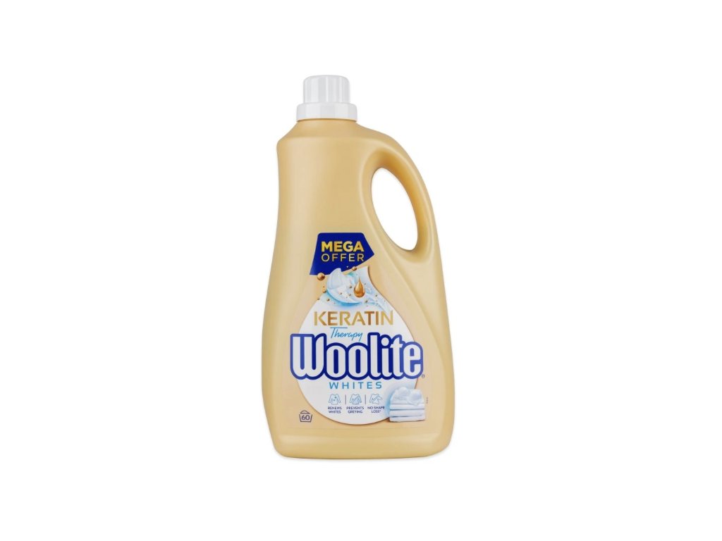 Woolite Keratin Therapy Whites ist ein hochwirksames flüssiges Waschgel für weiße Wäsche , das nicht nur reinigt effektiv , aber auch schützt die Farben auf der Kleidung, bevor es verblasst. Dank seines Keratingehalts schützt es die Textilfasern , verleiht Weichheit, schützt vor Pilling und knittert den Stoff nicht.
