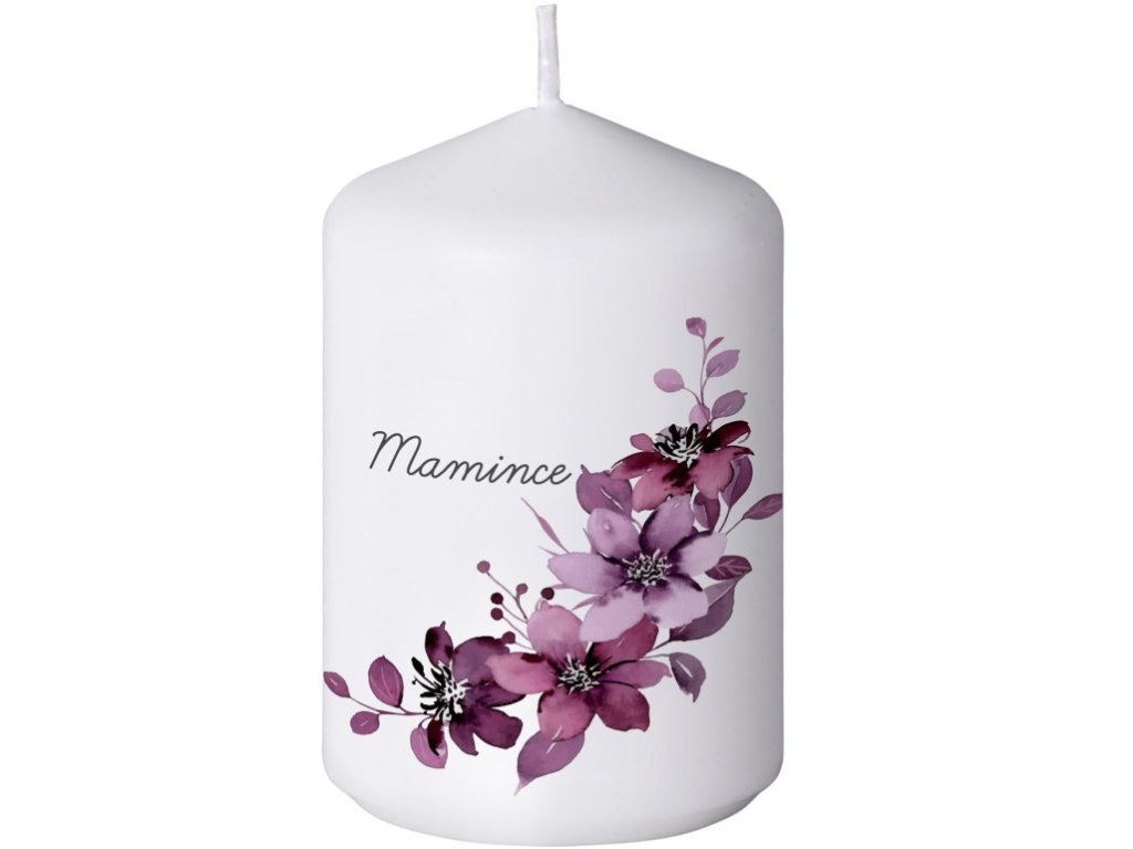 Zylinderkerze „Mama“ – lila Blume, 50 x 90 mm
